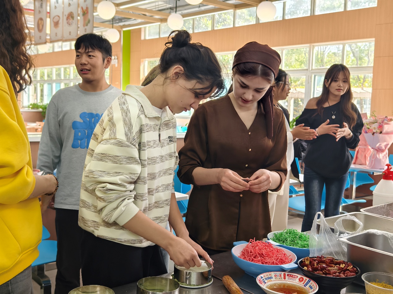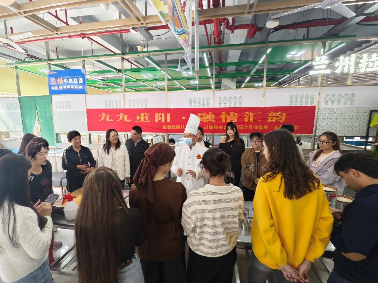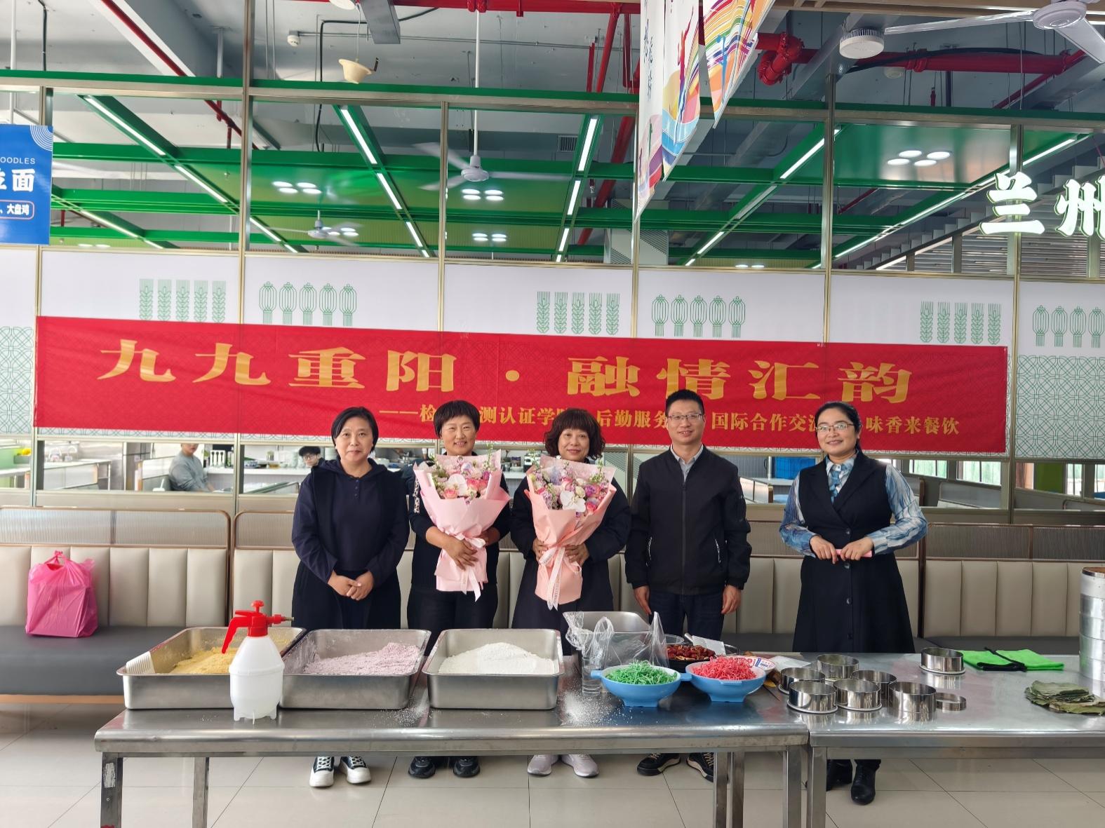 10月29日,检测学院与国际交流合作处携手在二食堂一楼举办了“九九重阳·融情汇韵”重阳节庆祝活动,并同步举行了管福征、俞建君两位老师的荣休仪式。出席此次活动的嘉宾包括国际交流合作处处长李清、检测学院党总支书记蒋文嵘、院长叶爱英、党总支副书记黄玲、后勤保障部副部长张曦、检测学院关工委副主任王建杰及关工委成员杨艳芳。活动现场特别邀请了常州纺织服装职业技术学院的糕点大师张师傅,为大家细致讲解重阳糕的制作技艺。此外,国教院的留学生代表、检测学院的少数民族代表以及学生骨干代表也积极参与了此次活动。活动由检测学院学工办主任凌月莲主持。
