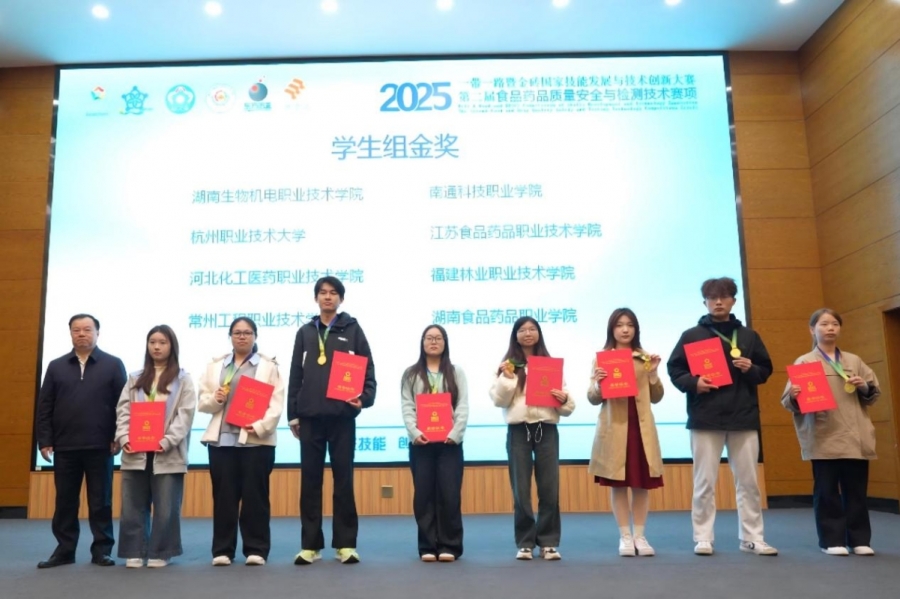 我校师生在2025一带一路暨金砖国家技能发展与技术创新大赛之第二届食品药品质量安全与检测技术赛项全国总决赛斩获双金
