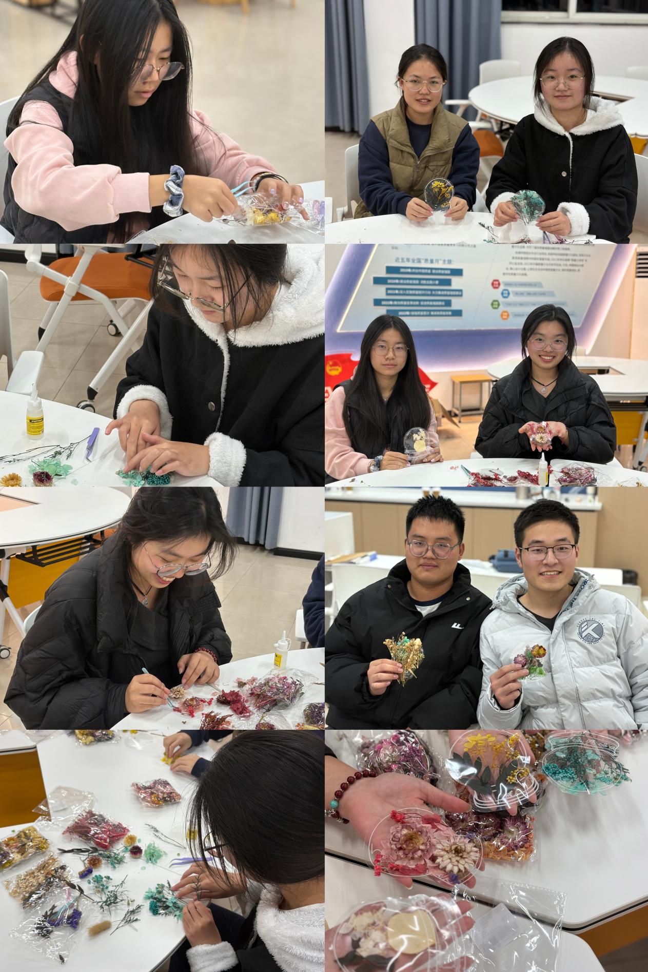 此次活动将手工创作与书籍分享相结合,既为参与者提供了释放创意、感受美好的平台,又打破了传统阅读分享的单调模式。大家纷纷表示,亲手制作的干花书签不仅是实用的阅读伴侣,更承载着活动中的美好回忆,而书籍分享环节则让自己收获了新的视角与感悟。(检测学院:文:冯璟 图:温佳妮、王思媛 审:凌月莲、黄玲、蒋文嵘)