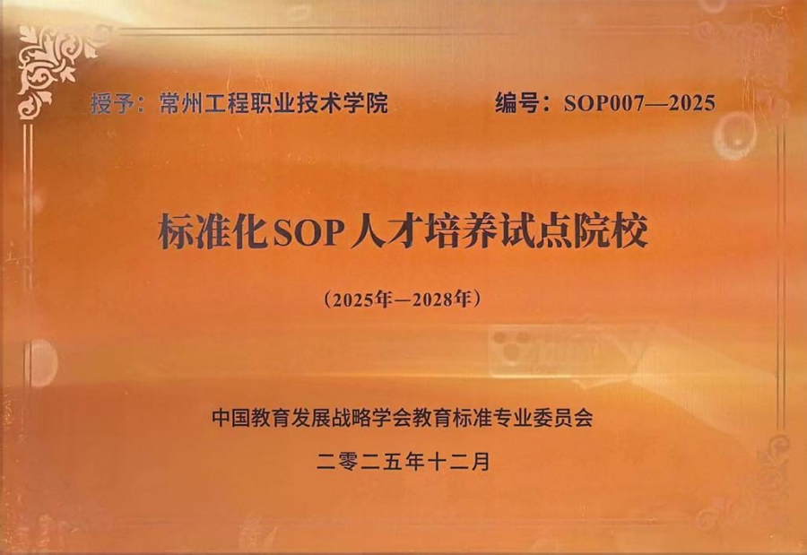 常州工程职业技术学院获首批“标准化SOP人才培养试点院校培育单位”授牌
