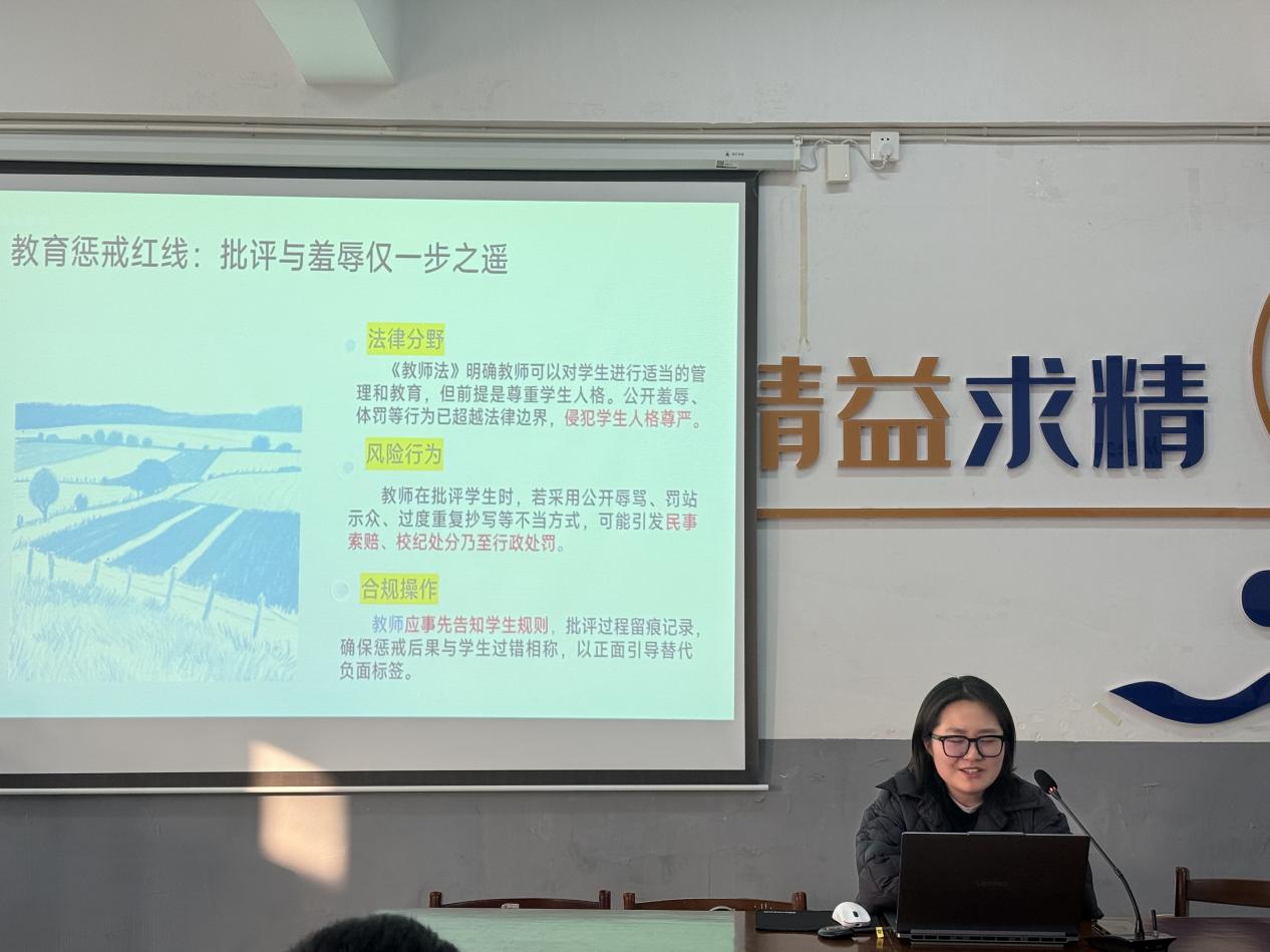 蒋文嵘在总结时强调,全体教职工要强化法治观念,将法治思维融入日常工作,学院将持续推进法治教育常态化,共同筑牢学院法治安全防线。