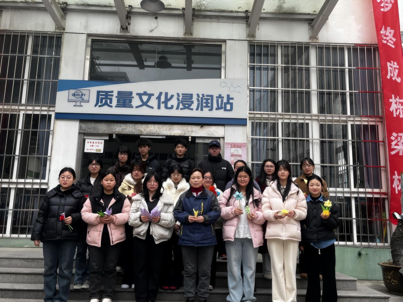 春风送暖,纸花传情。为庆祝第116个“三八”国际妇女节,丰富校园文化生活,3月6日下午,检测学院在3号楼质量文化浸润站举办了“以花为礼,致敬最美的你”折纸花手工体验活动。学工处石影、李俊、曹佳雯三位老师以及宿管阿姨等女性教职工代表受邀参加。活动现场,大家齐聚一堂,用灵巧的双手折出朵朵纸花,向身边的女性师长与劳动者传递节日的美好祝福。