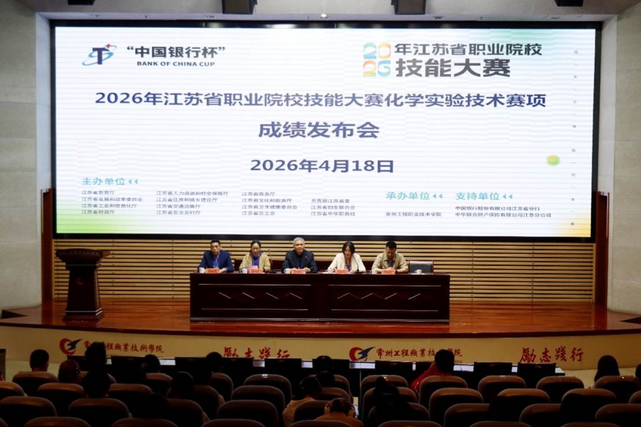 4月16日至19日,2026年江苏省职业院校技能大赛“化学实验技术”赛项在我校生物医药与检验检测学院成功落幕。本次赛项汇聚了全省12所高职院校的36名选手同台竞技、切磋技艺、展现风采。经过为期四天的激烈角逐,我校代表队凭借扎实的理论功底、精湛的实操技能以及良好的职业素养,最终斩获第二名的优异成绩。
